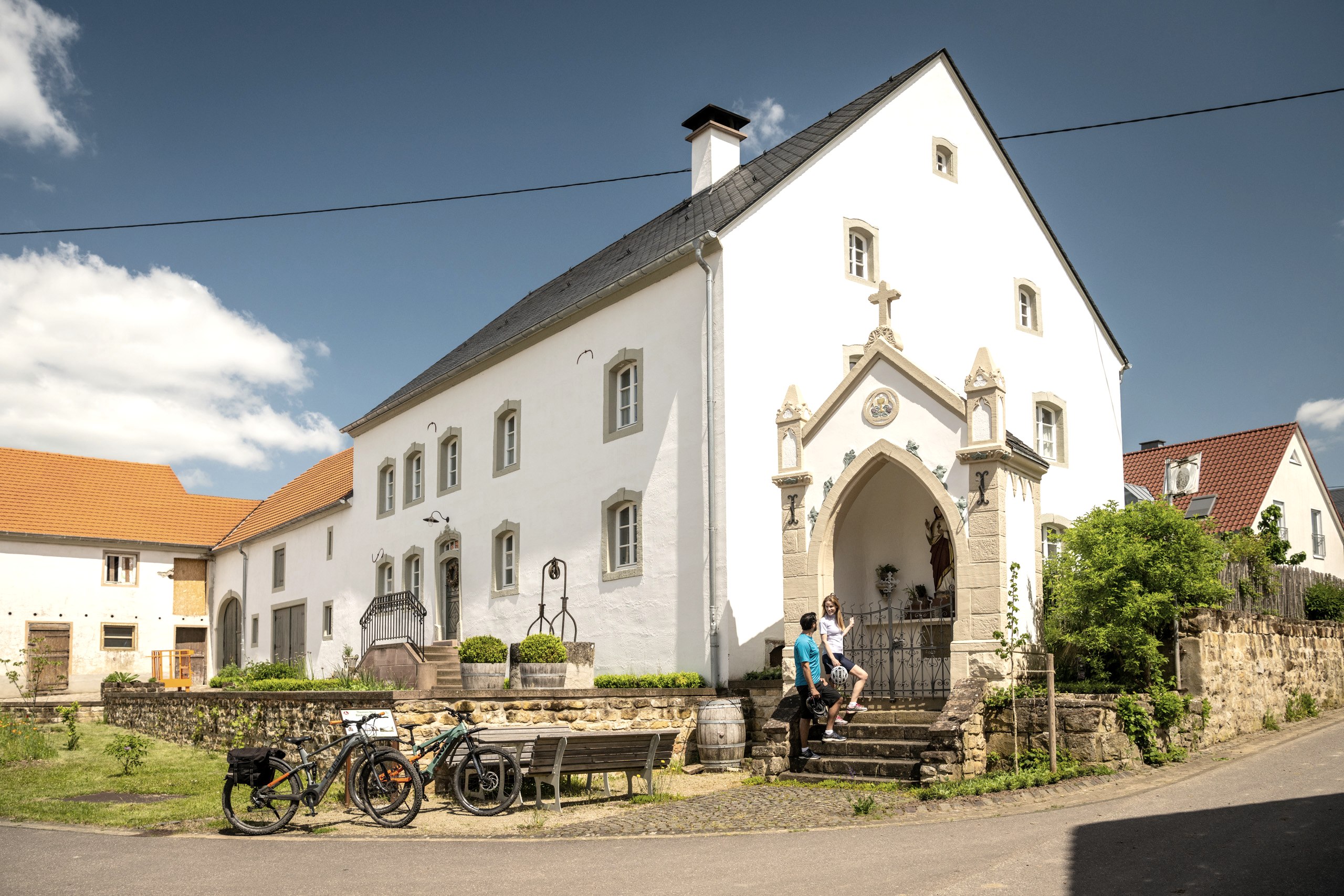 Kulturelle Highlights in märchenhafter Natur stehen für die Radtour auf dem Teilstück des Nims-Radweges zwischen der Eifeler Bier-Metropole Bitburg und Minden an der deutsch-luxemburgischen Grenze. Lohnenswert direkt zu Beginn ist ein Blick in die Bitburger Erlebniswelt bevor die herrliche Fahrradtour auf dem weiteren Weg Kultur und Natur in besonderer Art vereint. Ein Beispiel für die vielen Attraktionen beim Radwandern Eifel auf dieser Strecke: Die Skulpturen aus Eifeler Sandstein, die den Radweg bis Minden säumen. Im Frühling begleiten im südlichen Teil des Nims-Radweges blühende Streuobstwiesen die Radtour.