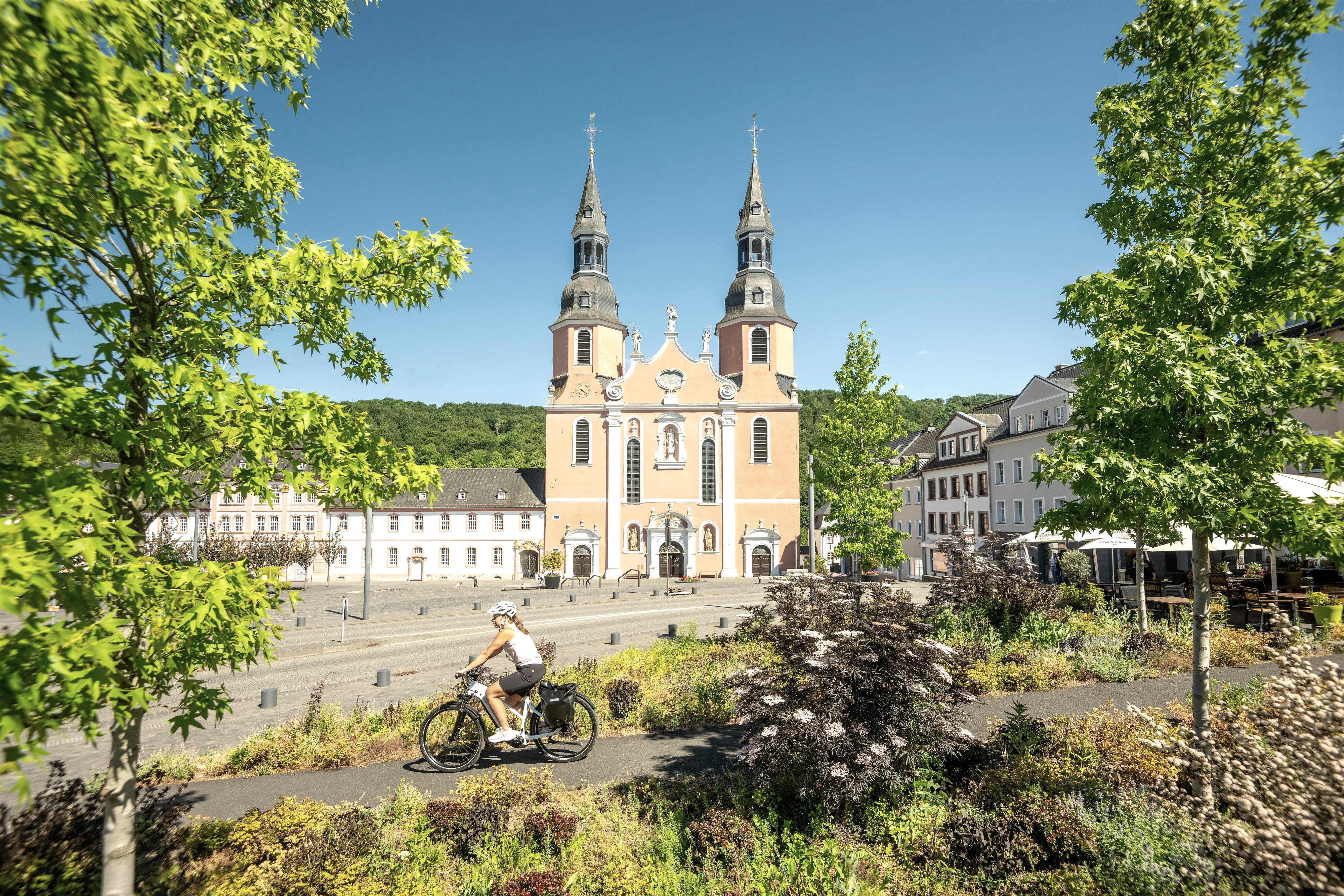 The e-bike charging cabinet with 6 lockers is located in the center of Prüm in front of the Tourist Information Prümer Land, Hahnplatz 1.