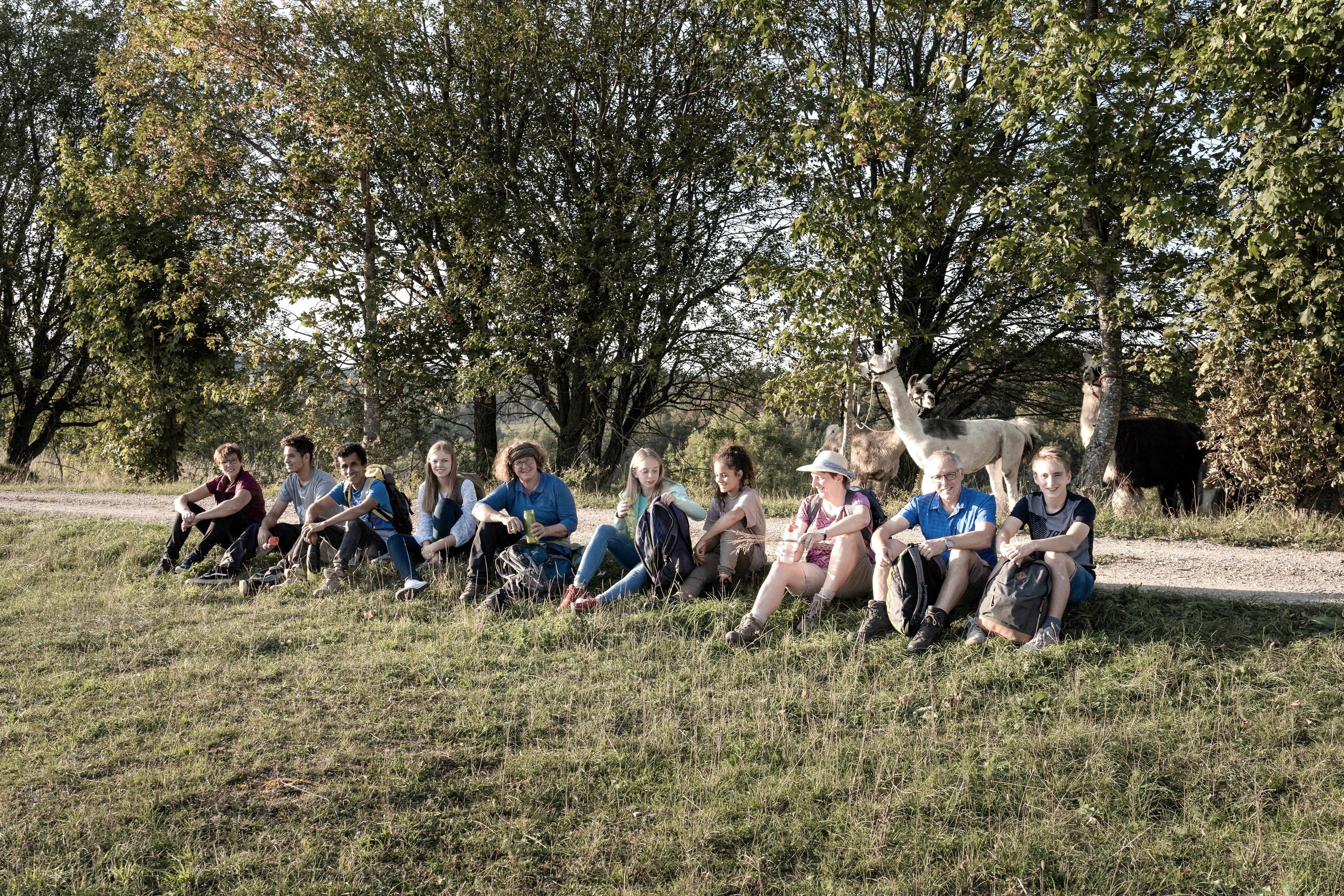 With children and teenagers aged 12 and above, we undertake a hike in the nature reserve. Here, every two children/teenagers will share a llama. We will adjust the route to match the age and fitness level of the children.