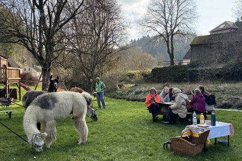 The tours lead with well-trained guides and fluffy animal company to botanical, cultural, geological or historical sights of Schoenecker Schweiz and other sub-regions of the Eifel, depending on the guests' interests.