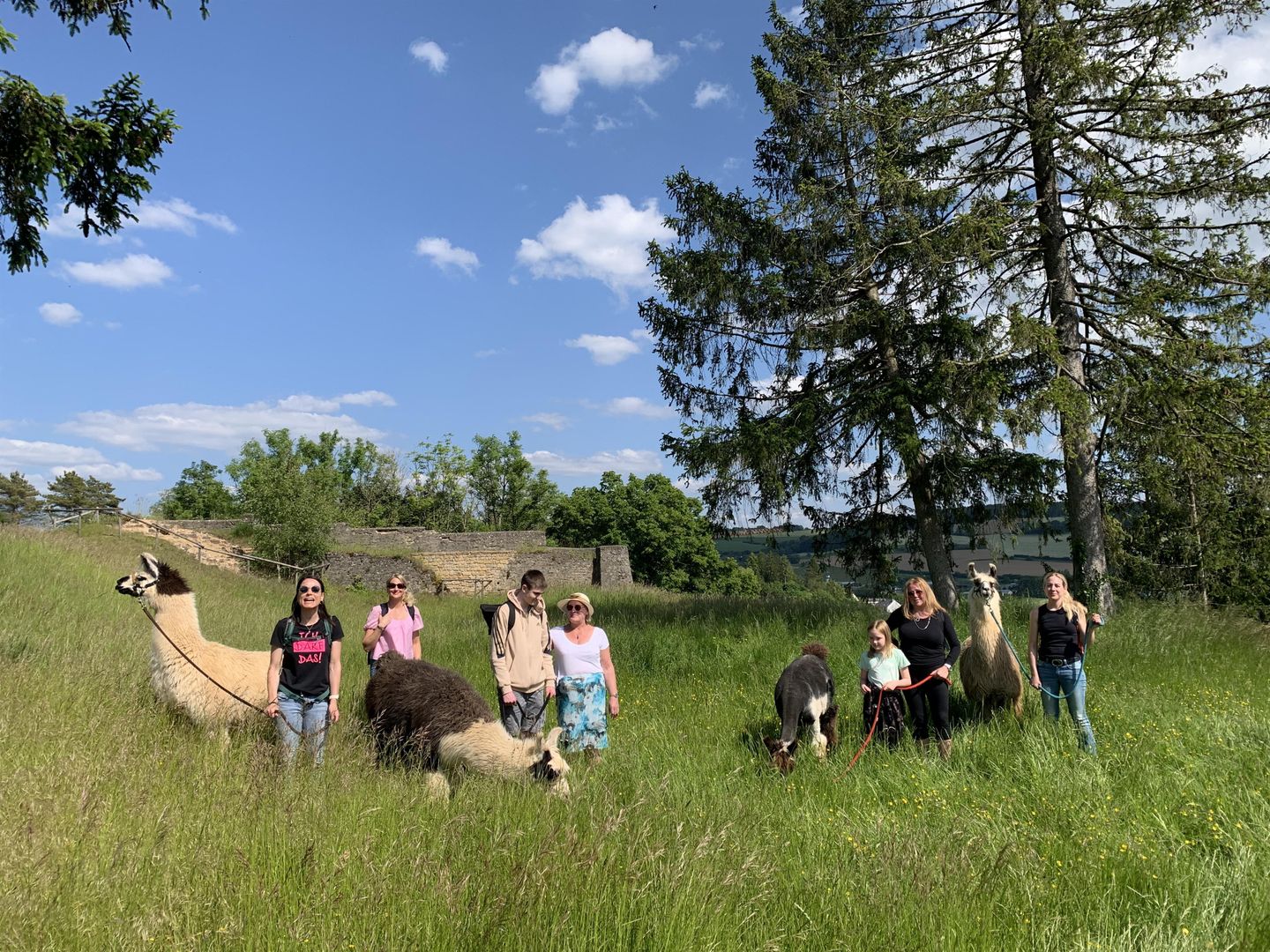 pro Alpaka- Lamaführer:in kann maximal eine Begleitperson hinzugebucht werden