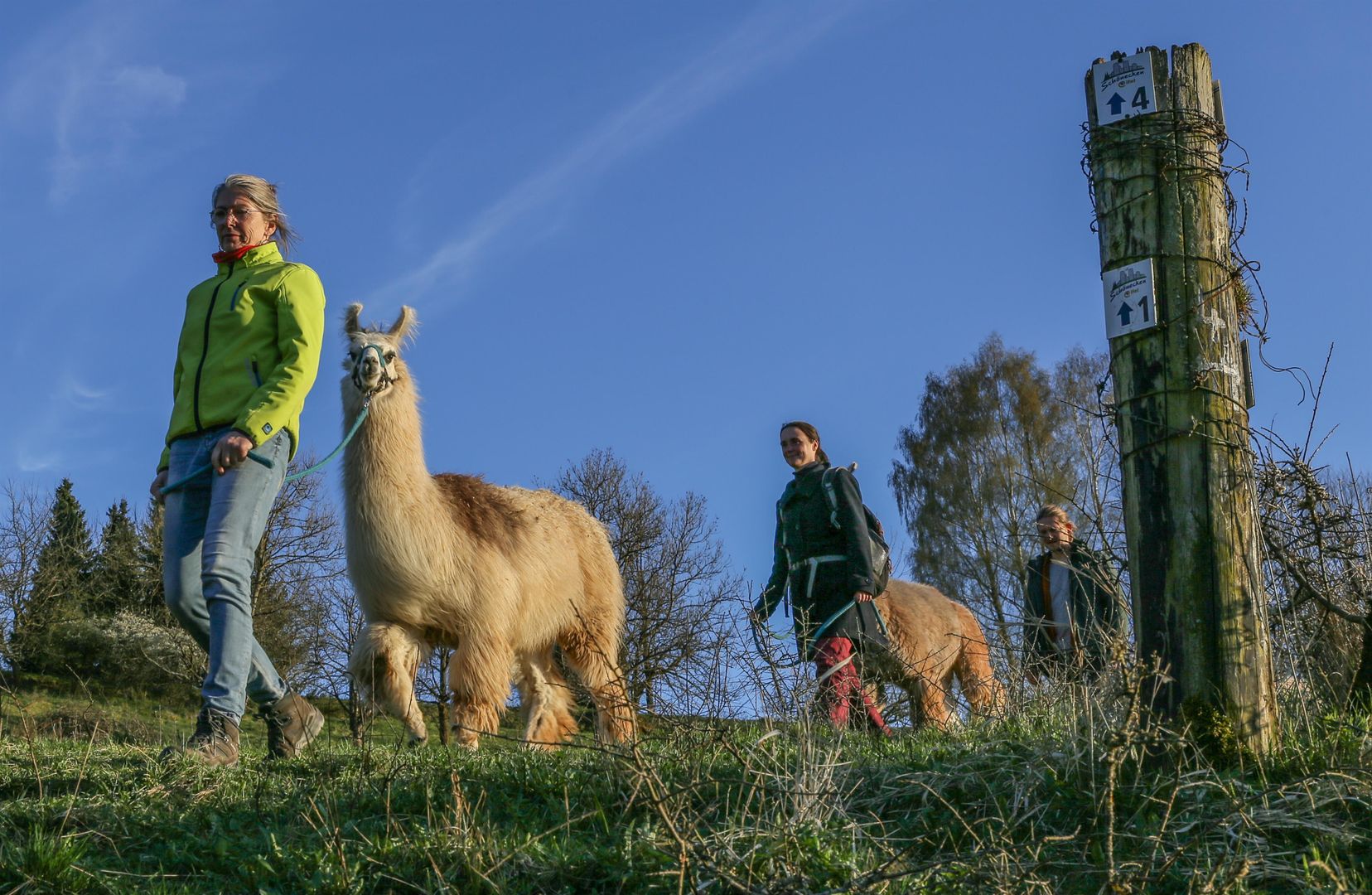 Unser einmaliges Event beginnt und endet direkt unterhalb der Burgruine von Schönecken auf der Weide der eifelnomaden. Nach einer kurzweiligen Einführung, bei der ihr die Lamas und Alpakas kennen lernt und erfahrt, wie man so ein Tier führt, starten wir gemeinsam mit unserem kundigen Guide zu unserer Wanderung.