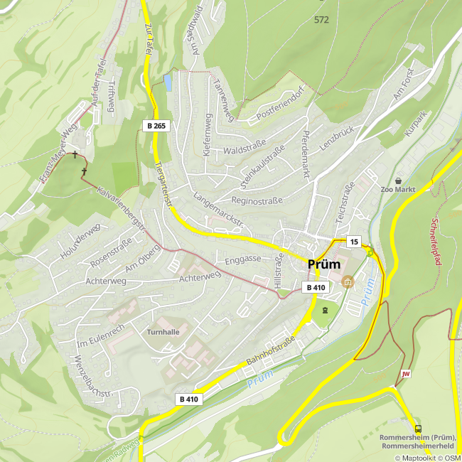 Vom Rathausplatz in Prüm wird zum Wanderparkplatz am Blockhaus "Schwarzer Mann" gefahren.