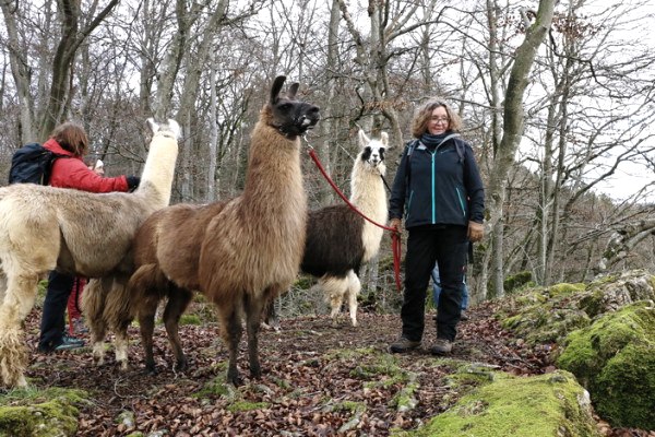 Dès le début, nous descendons dans la vallée de l'Altburgbach. Les vergers et les silhouettes élancées des buissons de genévrier nous accompagnent. Nous gravissons ensuite la crête "Op Ischt" et profitons des vastes vues sur le plateau. Plus tard, nous nous enfonçons dans la forêt de hêtres et arrivons dans une clairière cachée où nous faisons une première pause. Nous continuons au-dessus du Schalkenbach, au milieu de la forêt, sur d'étroits sentiers. Nous arrivons enfin à l'ancien château celte qui trône sur des rochers abrupts au-dessus de l'Altburgbach. Nous y faisons une nouvelle petite pause et avons tout le temps de nous faire photographier avec les lamas. Il faut ensuite redescendre de l'éperon rocheux dans la vallée par un étroit sentier. En suivant l'Altburgbach, nous rejoignons notre point de départ après environ quatre heures.