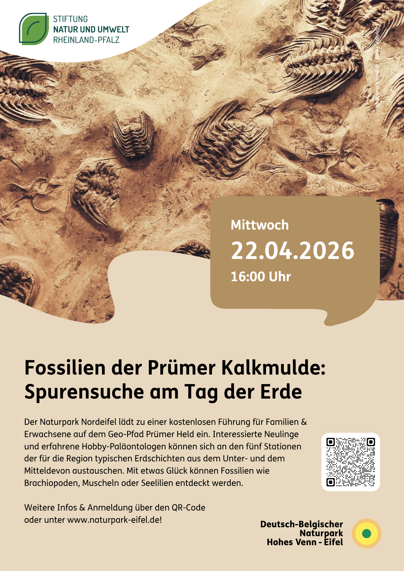 Am Tag der Erde können sich interessierte Neulinge und erfahrene Hobby-Paläontologen an den fünf Stationen der für die Region typischen Erdschichten aus dem Unter- und dem Mitteldevon austauschen. Mit etwas Glück können Fossilien wie Brachiopoden, Muscheln oder Seelilien entdeckt werden.
