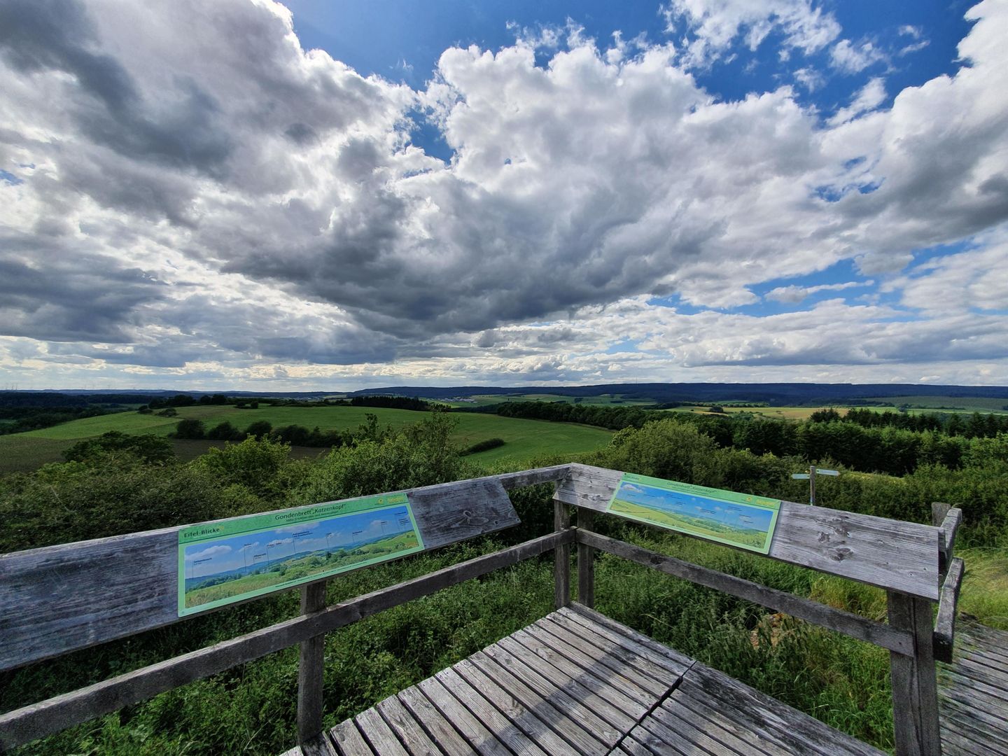 Dieser Eifel-Blick bietet eine Plattform mit Rundumblick, die auf einem gesprengten Westwallbunker errichtet wurde, eröffnet sich ein beeindruckendes Panorama: Der gesamte Höhenzug der Schneifel, die Höhengebiete des Islek sowie die Prümer Kalkmulde liegen hier dem Betrachter zu Füßen.
