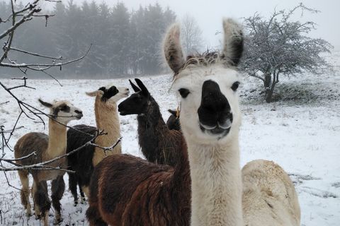 Die Lama-Touren führen mit gut ausgebildeten Guides und flauschiger tierischer Begleitung je nach Interesse der Gäste zu botanischen, kulturellen, geologischen oder historischen Sehenswürdigkeiten der Schönecker Schweiz und anderer Teilregionen der Eifel.