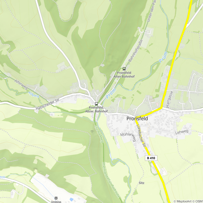 Schon von Weitem weist eine alte Museumslok den Weg zu dem kleinen Eisenbahnmuseum am Radweg in Pronsfeld. Dort wo einst die Züge der Westeifelbahn fuhren, sind auf den alten Bahntrasse heute RadfahrerInnen zwischen Prüm und St. Vith in Belgien unterwegs. Das Museum zeigt anhand von Fotos und Dokumenten an Schautafeln, die Geschichte der Eisenbahn in Pronsfeld seit 1886. Zusehen sind unter anderem eine Kleinlokomotive vom Typ Köf II mit Flachwagen, ein 3. Klasse Personenwagen aus dem Jahr 1940 sowie Bahnschranken, Gleisstücke, Formsignale und diverse bahnhistorische Geräte.