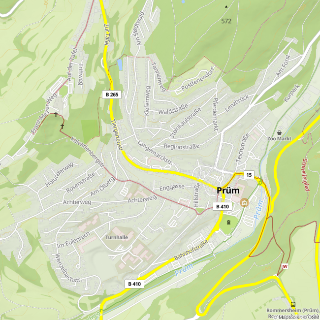 Die Entwicklung der Stadt Prüm, beginnend mit der ersten Klostergründung 712 und der Neugründung im Jahr 752 durch die Eltern Karl des Großen und damit die enge Verbindung zwischen Prüm und den Karolingern ist hier dokumentiert. Auch die Geschichte der Abtei Prüm, der Abtei Niederpüm und des Chorherrenstiftes Prüm ist anhand von Fotos und Berichten dargestellt.