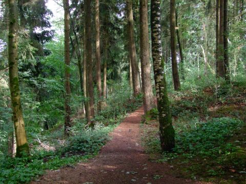 Auf etwa halber Strecke öffnet sich die Waldkulisse zum grandiosen „Dreiländerblick“. Eine hölzerne Plattform lädt euch zum entspannten Verweilen oder – falls ihr wollt – zu einem romantischen Picknick ein. Bei guter Sicht reicht der Blick bis hin zu den Höhenzügen von Islek, Ösling und dem Hohen Venn. Auf dem Weg zurück taucht ihr wieder ein in den schattigen Wald – vielleicht lässt sich ja doch noch eine Fee blicken.