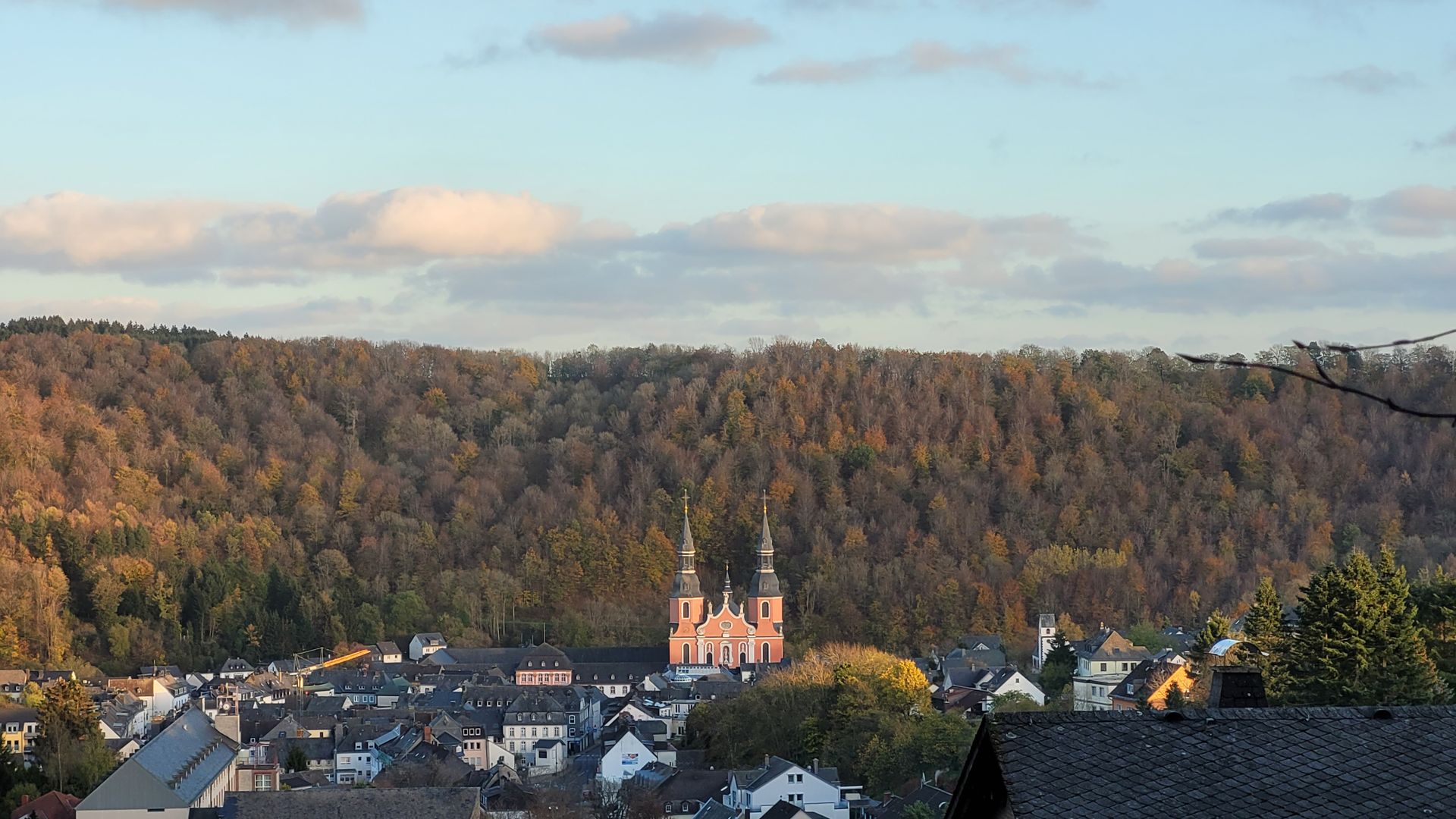 Der Panorama-Wanderweg 120 rund um die Karolingerstadt Prüm - "Egal, von welcher Seite wir uns nähern: Irgendwann ist er da, der erste Blick hinunter ins Tal auf Prüm und seine stolze Basilika – wunderschön, fast poetisch, lässt dieser Anblick niemanden kalt. Prüm von allen Seiten betrachten, erkunden, fotografieren,nirgendwo ist das besser möglich als auf dem Panorama-Wanderweg 120 rund um die Karolingerstadt, der zudem auch reichlich Aussicht in andere Richtungen zu bieten hat.
