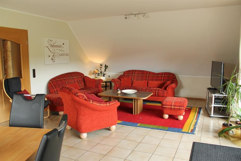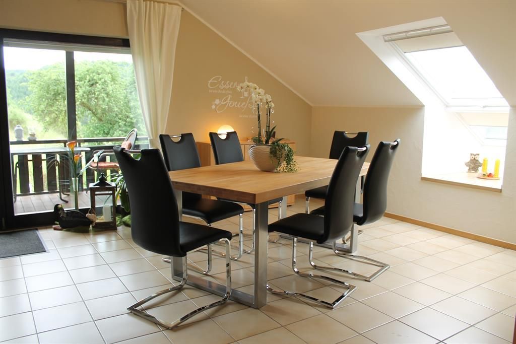 Attraktive 4 Sterne Ferienwohnung für 2 bis 6 Personen (120 qm) mit viel Liebe zum Detail in ruhiger Ortsrandlage mit sehr schöner Aussicht über Tal, Wiesen und Wälder. Hier finden Sie Ruhe u. Entspannung u. Ihre Kinder viel Platz für Spaß und Spiel.