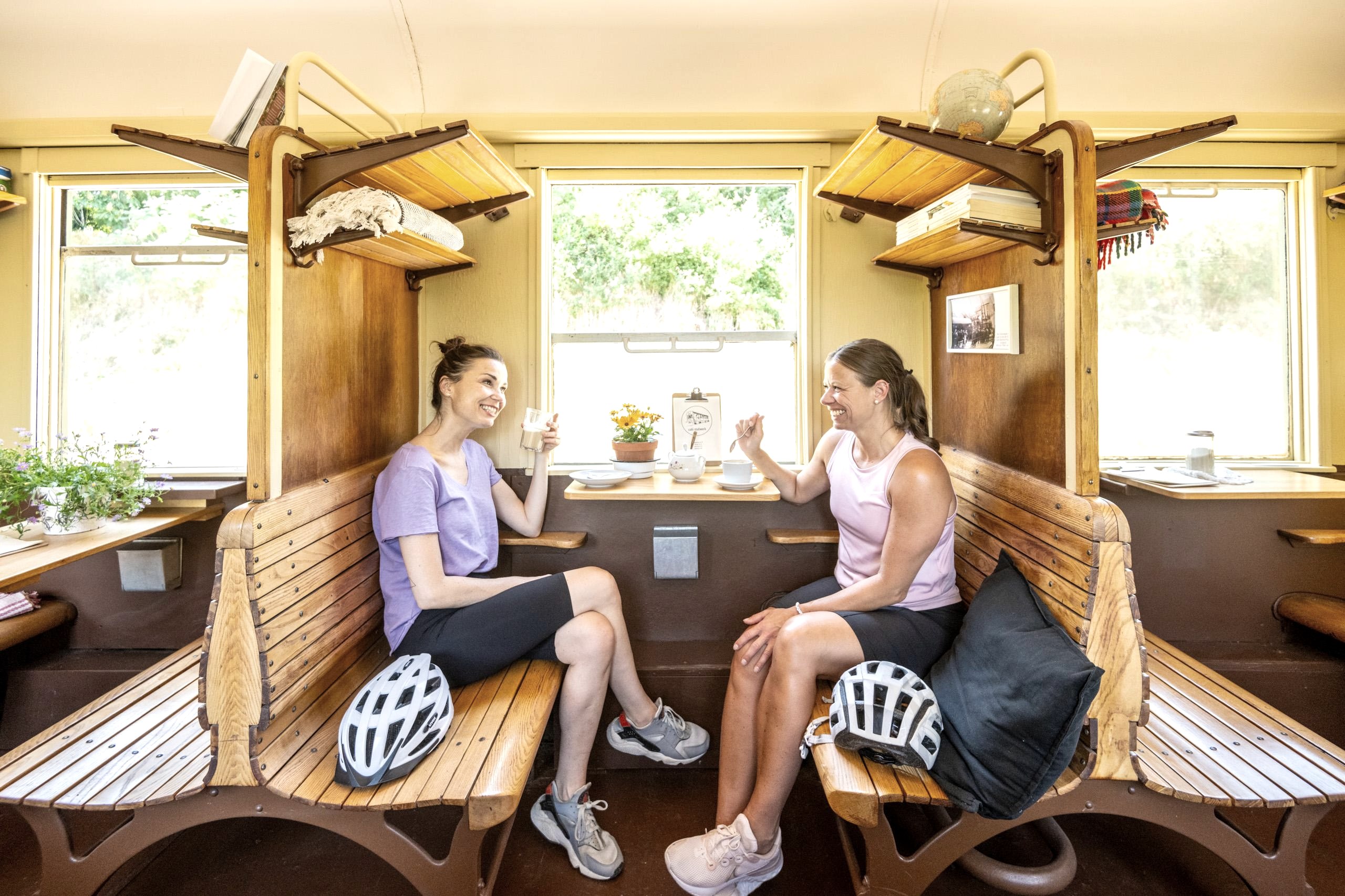 Im gemütlichen und liebevoll restauriertem Waggon kommt Reisefeeling aus alten Zeiten auf. Bei schönem Wetter könnt ihr draußen um den Waggon rum in der Sonne guten Kaffee und hausgemachten Kuchen oder unsere herzhaften Stullen mit einem kühlen Radler genießen.