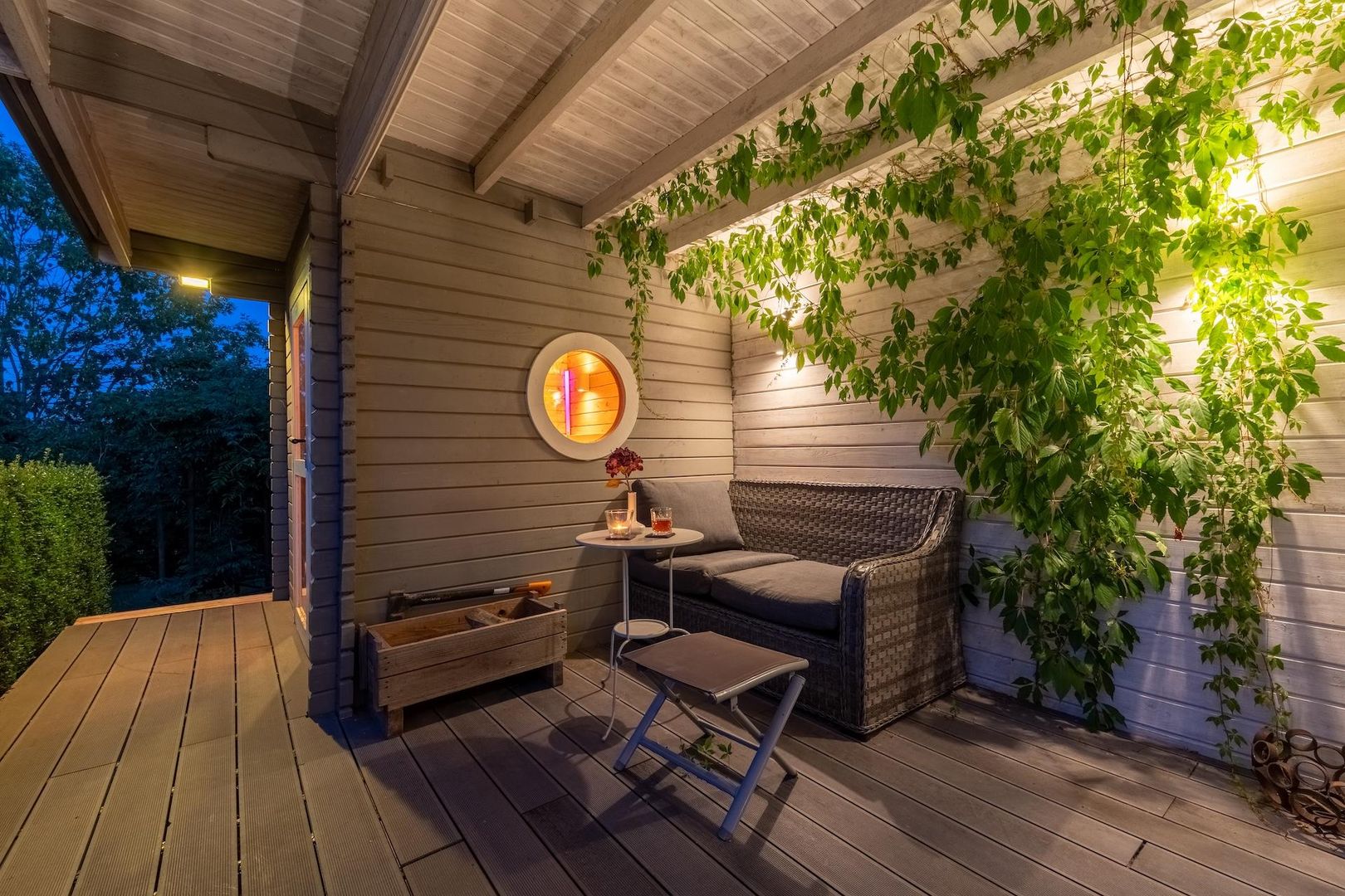 Euch gehört das komplette alleinstehende Backhaus, inklusive Terasse mit Gartenmöbeln, Sauna und reichlich Parkplätzen.