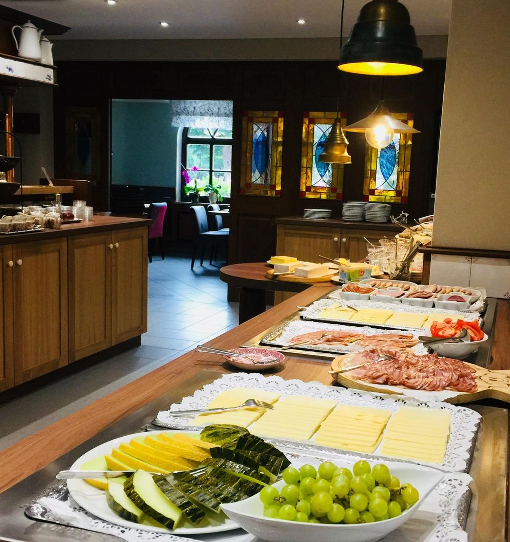 Zum Frühstück servieren wir Ihnen selbstgemachte Marmeladen, Wurstwaren aus eigener Herstellung, Spezialitäten der Regionalmarke Eifel, eine große Brot und Brötchen Auswahl und dazu noch vieles mehr. In unserem schönen Restaurant bieten wir Ihnen Köstliches der Eifel von den Landwirten der Region, sowie zwei Biere vom Faß und ausgesuchte Weine.