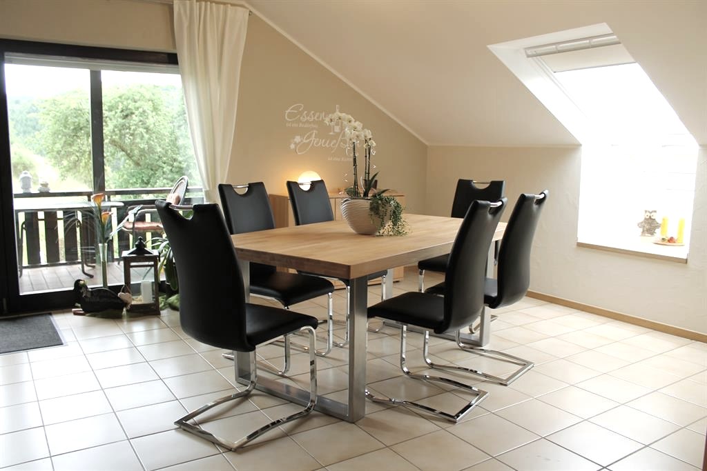 Attraktive 4 Sterne Ferienwohnung für 2 bis 6 Personen (120 qm) mit viel Liebe zum Detail in ruhiger Ortsrandlage mit sehr schöner Aussicht über Tal, Wiesen und Wälder. Hier finden Sie Ruhe u. Entspannung u. Ihre Kinder viel Platz für Spaß und Spiel.