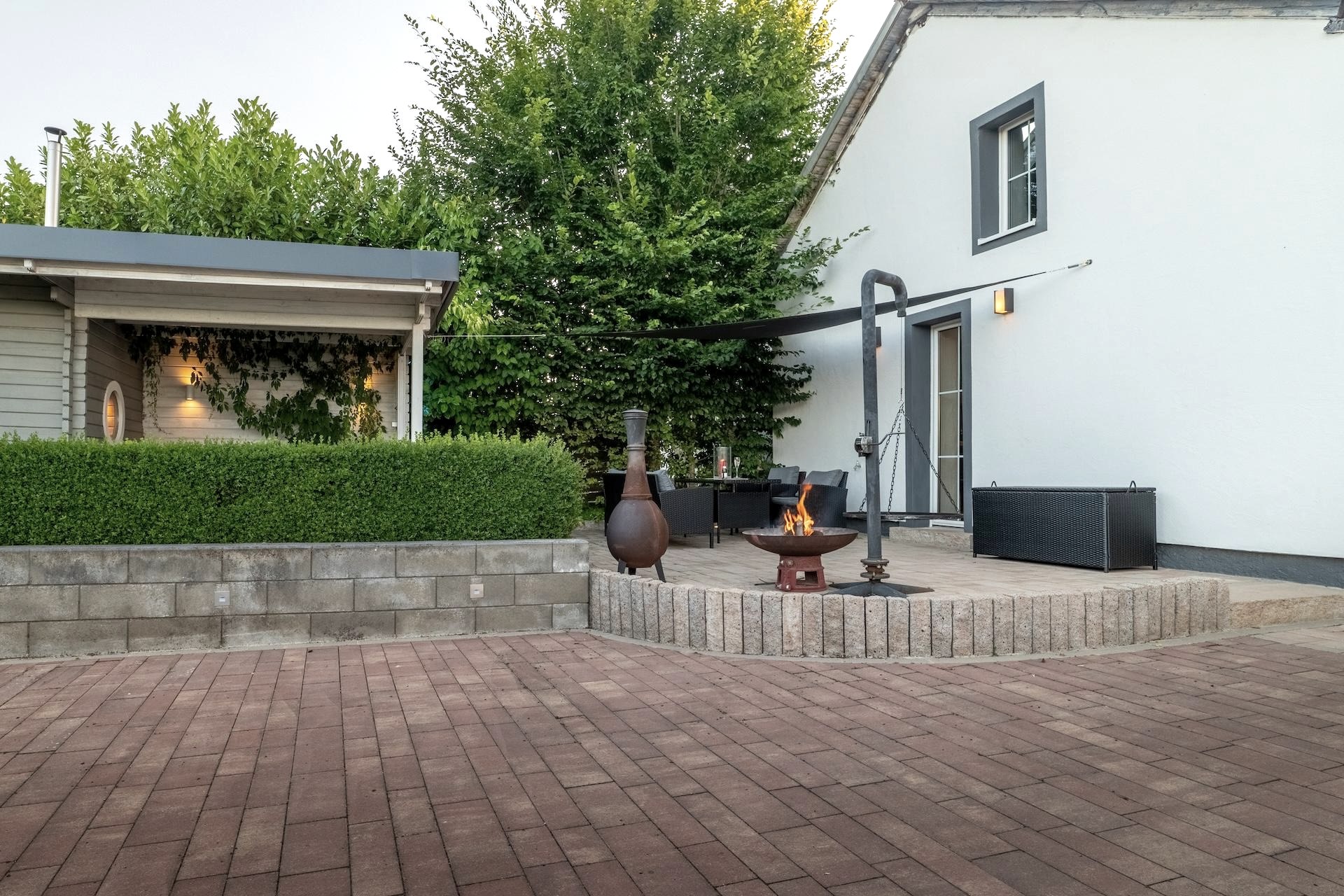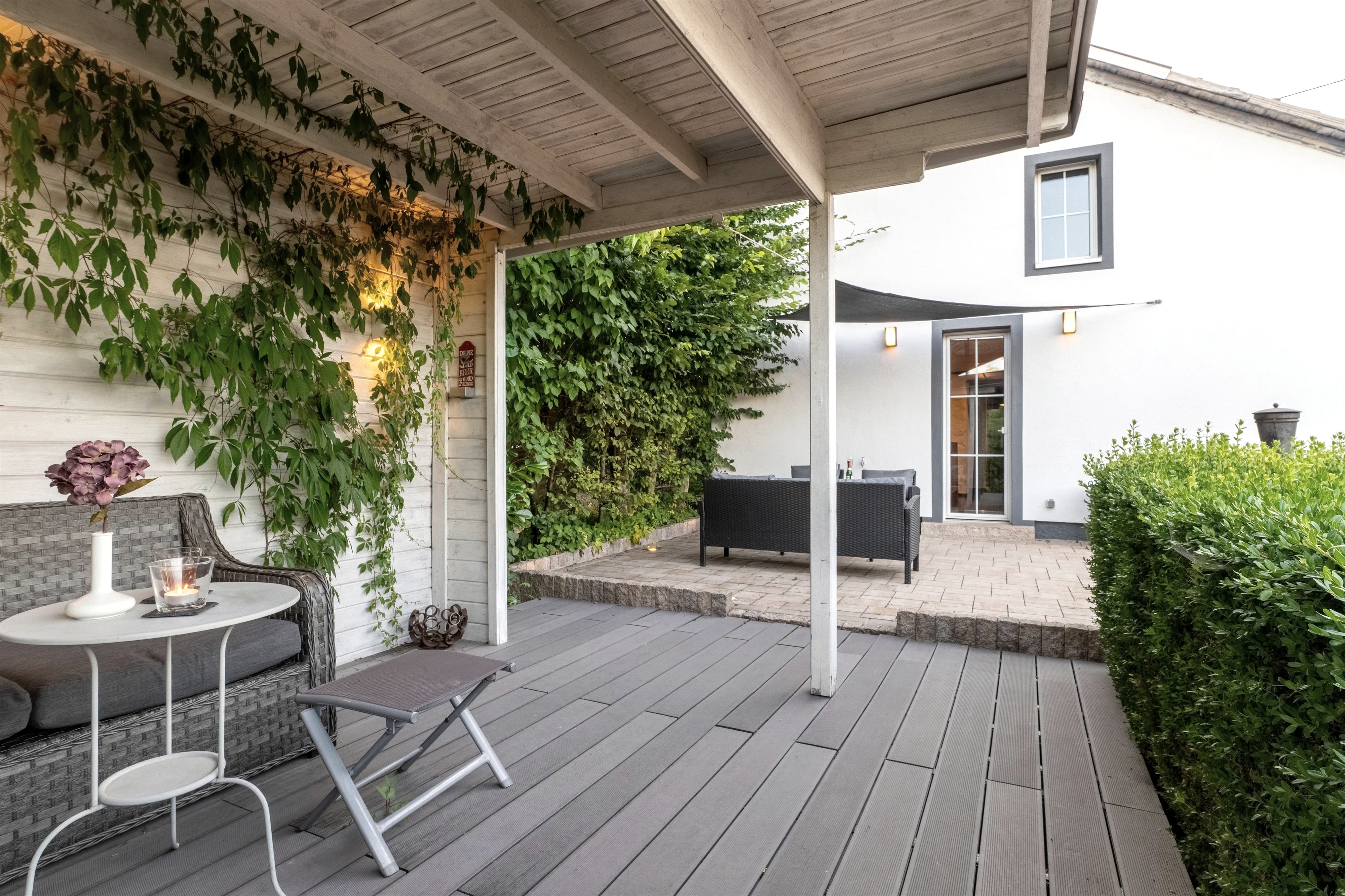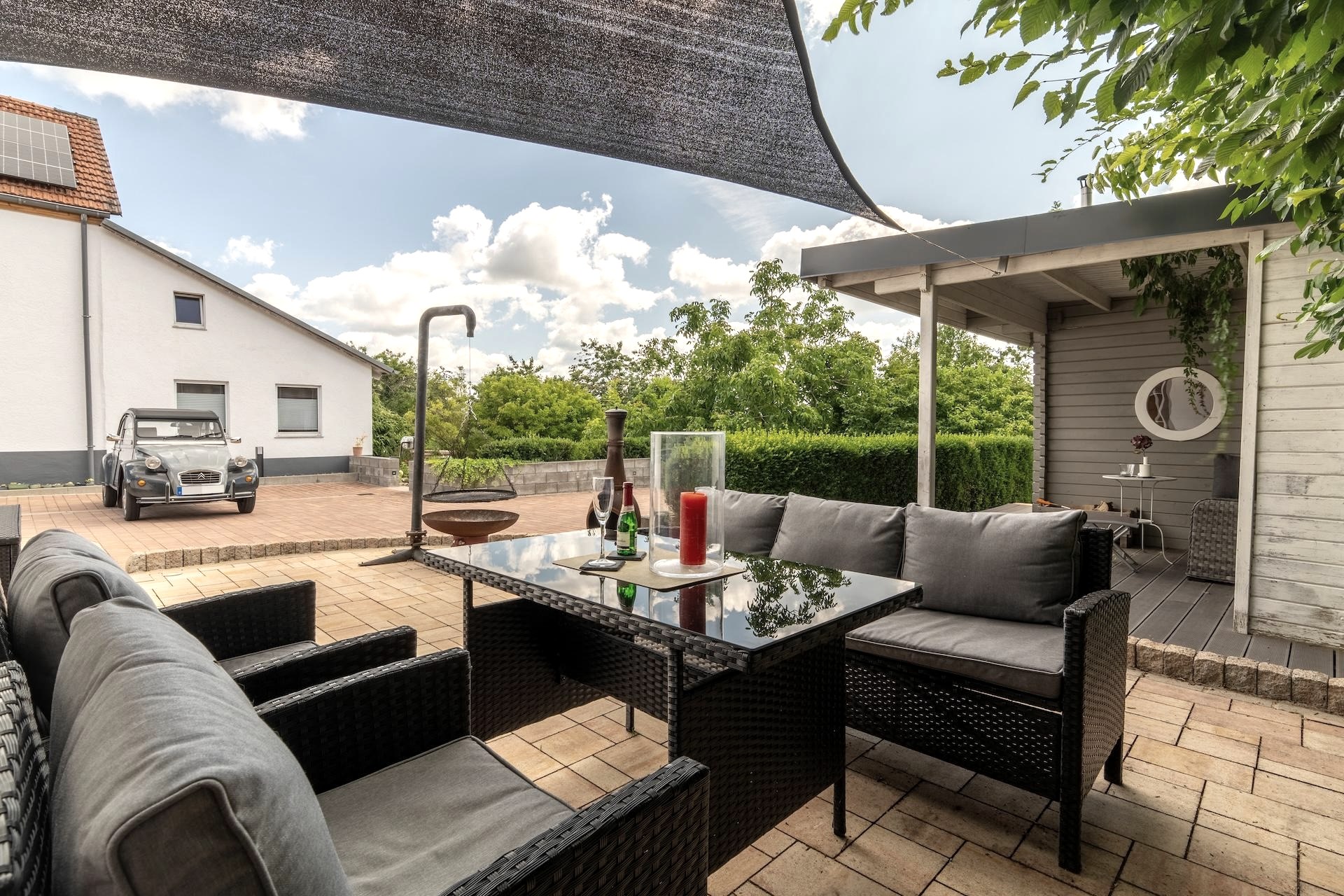 Euch gehört das komplette alleinstehende Backhaus, inklusive Terasse mit Gartenmöbeln, Sauna und reichlich Parkplätzen.
