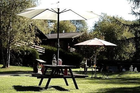 Außerdem großes Rasenspielfeld für Volleyball und Basketball, Tischtennisplatte, Gartenschach, kleiner Weiher mit Grillplatz, Waschmaschine und Trockner mit Münzautomat