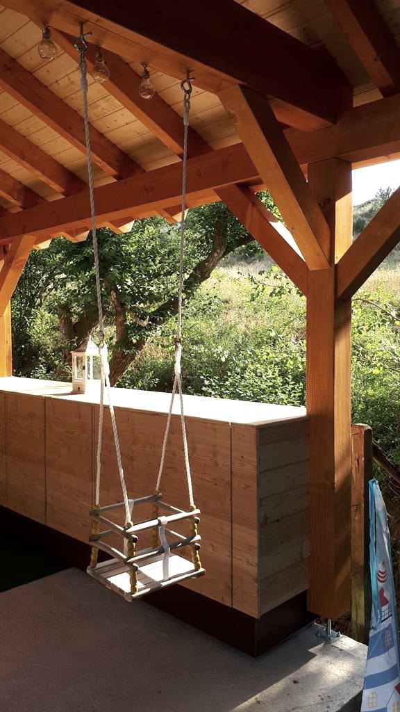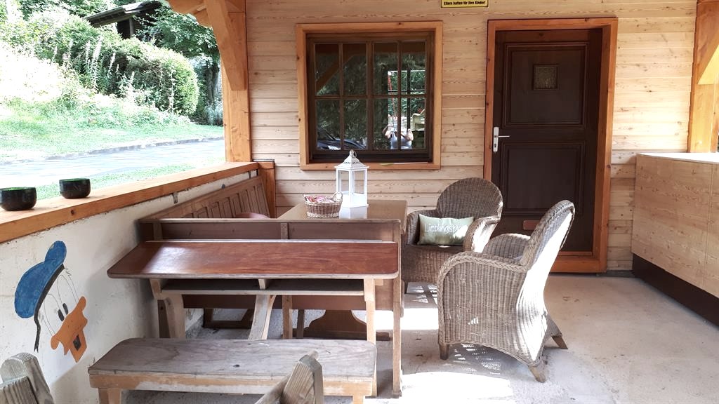 Der große geschützte und überdachte Freisitz bietet viel Platz am großen Tisch für Gesellschaftsspiele und am Abend lassen die Erwachsenen dort gerne in gemütlicher Runde den Tag ausklingen.