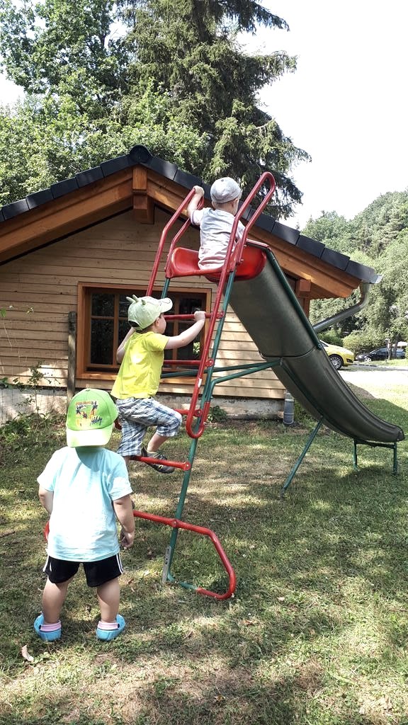 Im Spielhaus gibt es ein Klettergerüst für die Kleinen und viele nette Spielsachen die zum gemeinsamen Spiel einladen. Im Außenbereich Rutsche und Schaukeln.